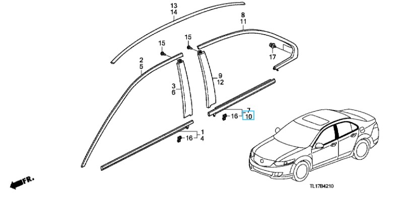 Honda Accord 2009-2015 Nearside (passenger side) Rear Scraper Moulding