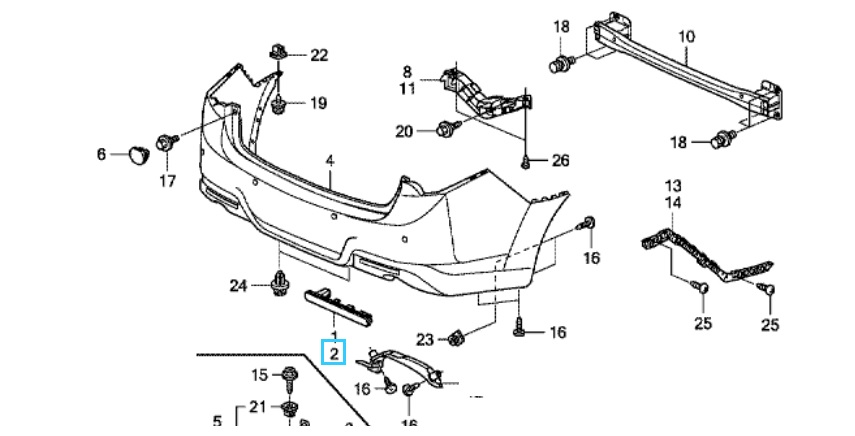 Honda Accord 2009-2015 Nearside (passenger side) Rear Reflector