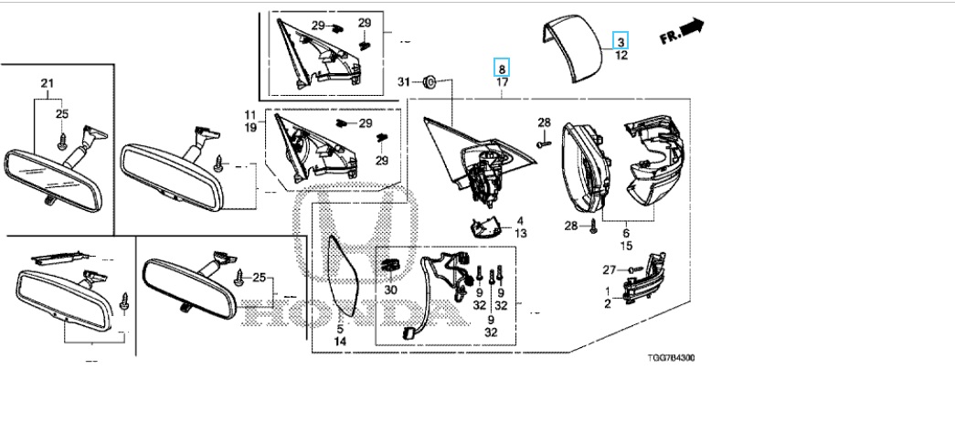 Genuine Honda Part Number: 76208-TGL-E22 76201-TBA-A11Z