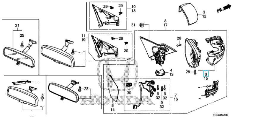 Honda Civic 2017-2022 Offside Mirror Housing Set