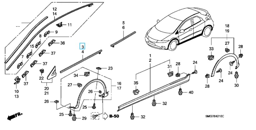 Home / Parts / Honda Civic / Civic 2006-2011 / Lighting / Exterior & Interior / Honda Civic 5 Door 2007-2011 OSF Door Scraper Moulding