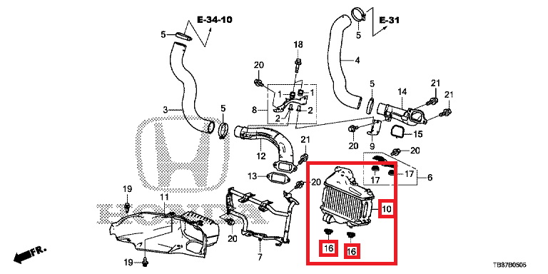 Genuine Honda part numbers: 19710-RZ0-G02, 74172-SD4-020 x2