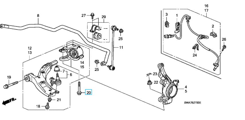 Honda CR-V 2007-2012 Civic 2012-2016 Front Lower Arm Rear Bolt