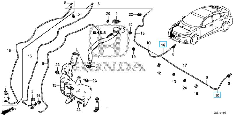 Honda Civic Type R 2017-2021 Washer Tube 240mm