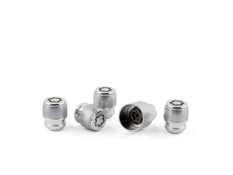Keep your alloy wheels secured with these silver, cap type locking wheel nuts.
