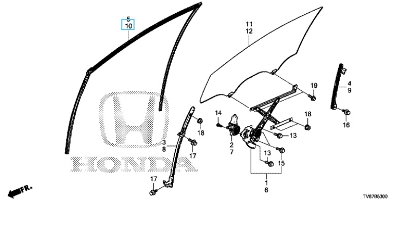 Honda Civic 2012-2016 Type R 2015-2016 Nearside (passenger side) Front Window Runchannel