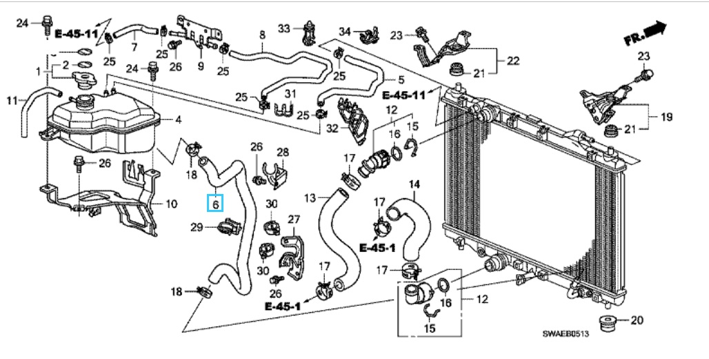 Honda CR-V I-DTEC 2010-2012 Lower Expansion Hose