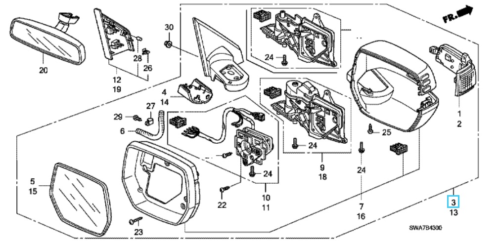 Honda CR-V 2007-2009 Offside (drivers side) Mirror Unit