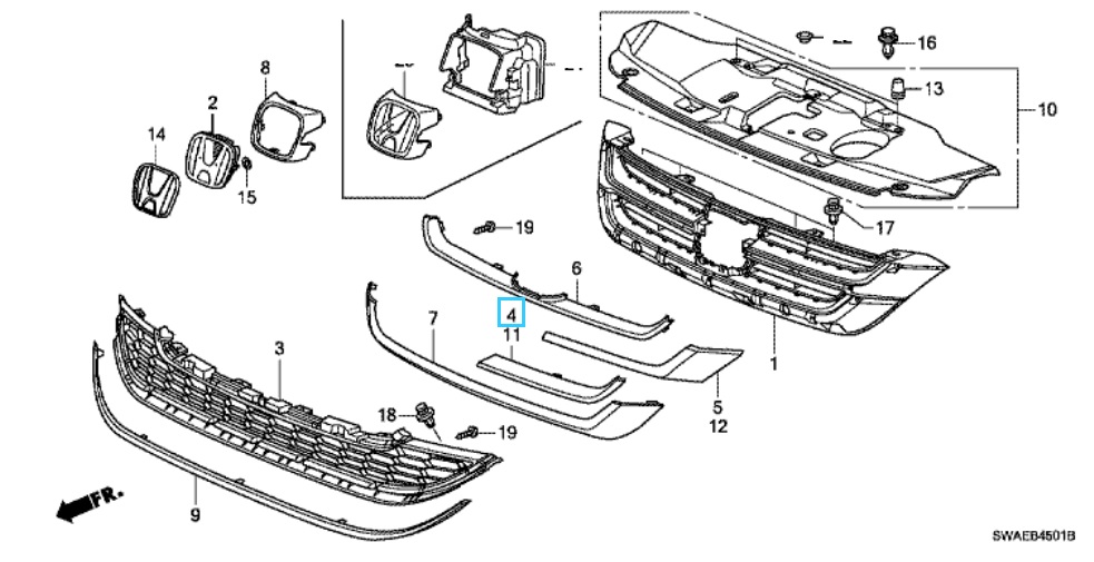 Honda CR-V 2007-2012 Offside (drivers side) Upper Grille Moulding