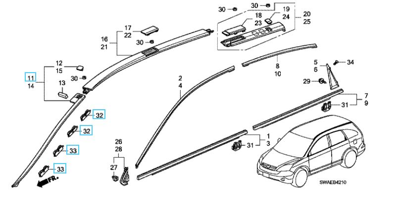 Right hand side windscreen garnish including side garnish clips suitable for 2007-2012 Honda CR-V