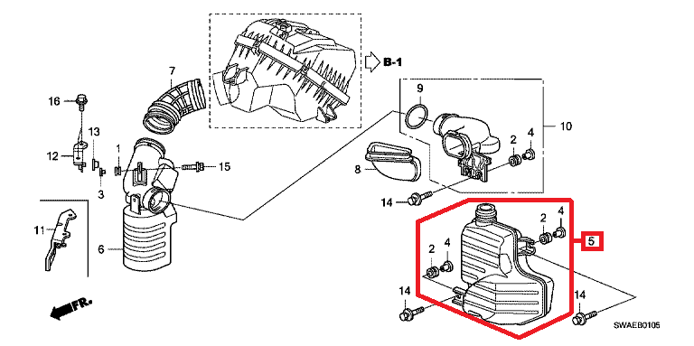 Genuine Honda part number: 17230-RZP-G00, 90001-P0A-000