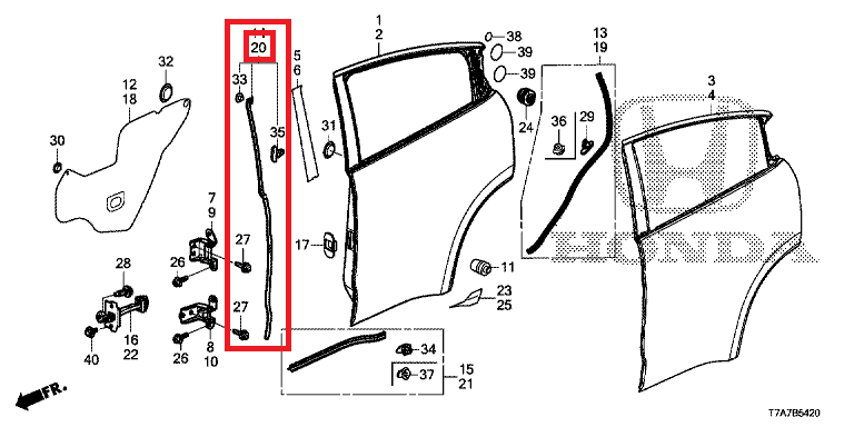Honda HR-V 2015-2021 Nearside Rear Door Weatherstrip