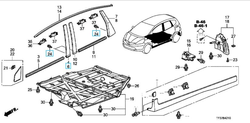 Genuine Honda Part Number: 72470-TF0-003, 90142-S04-000
