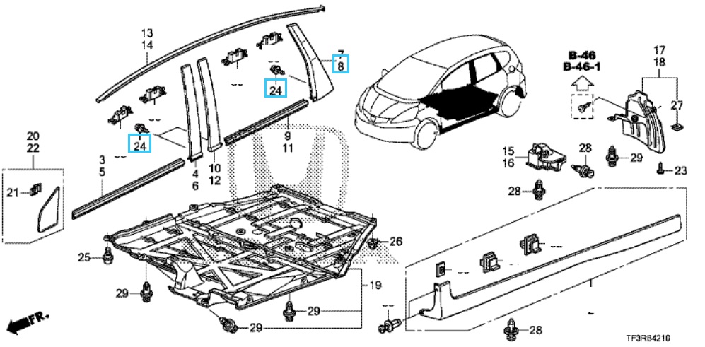 Genuine Honda Part Number: 72761-TF0-003, 90142-S04-000
