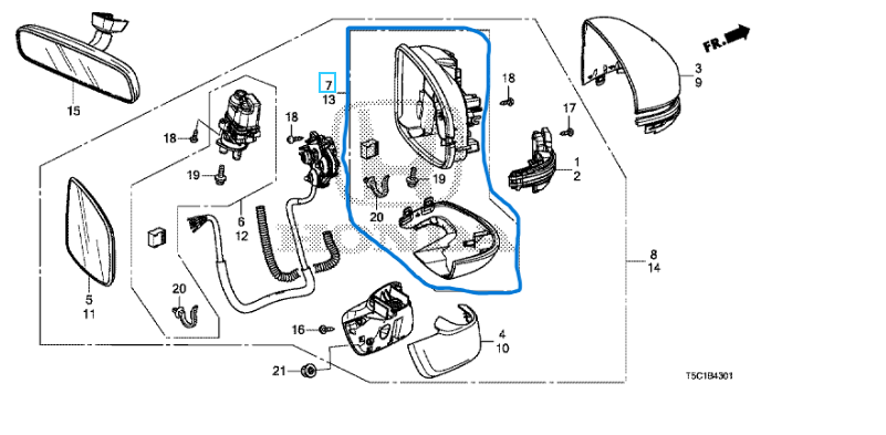 Honda Jazz 2015-2020 Offside Mirror Housing Set