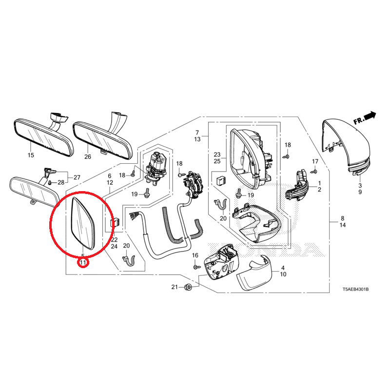 Left hand side mirror glass suitable for 2016-2019 Honda Jazz KE