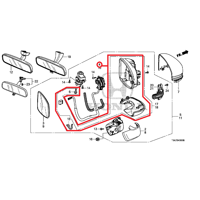 Right and side wing mirror housing set suitable for 2016-2019 Honda Jazz